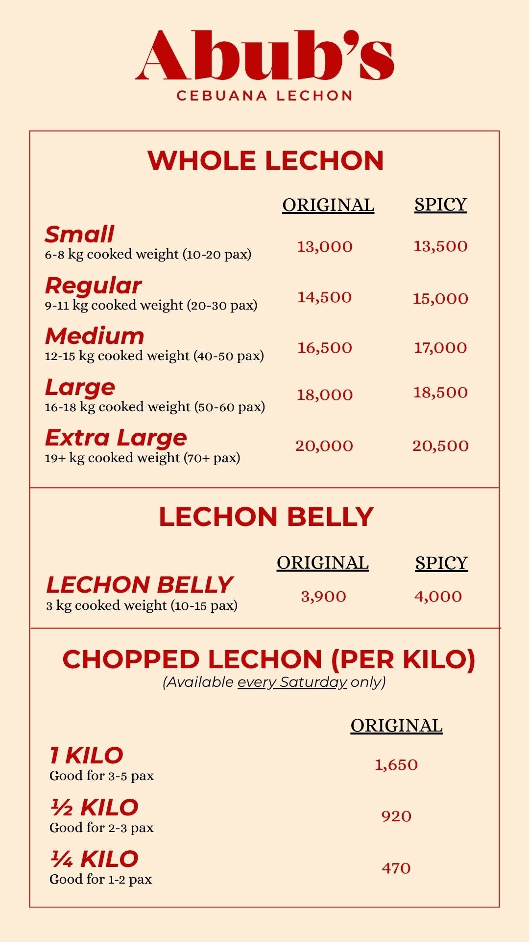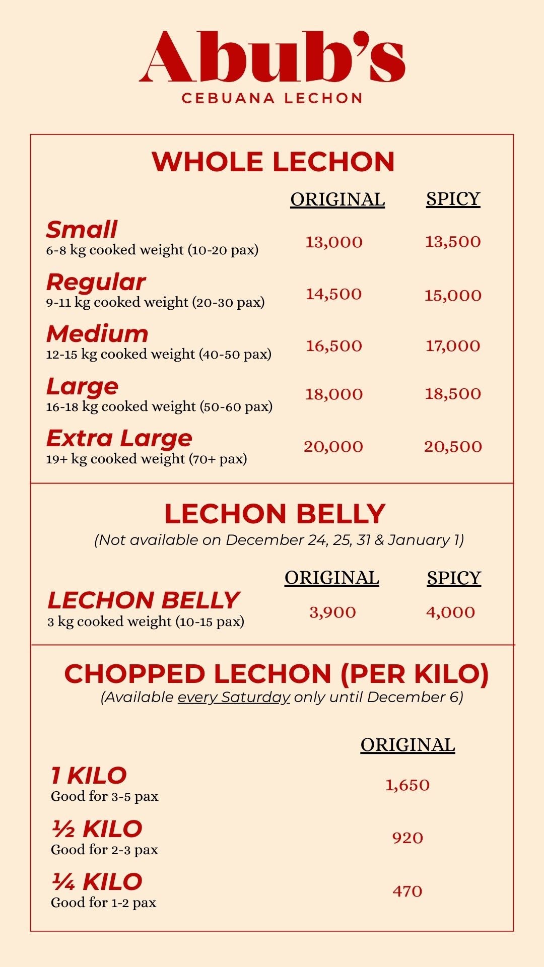 PRICE LIST